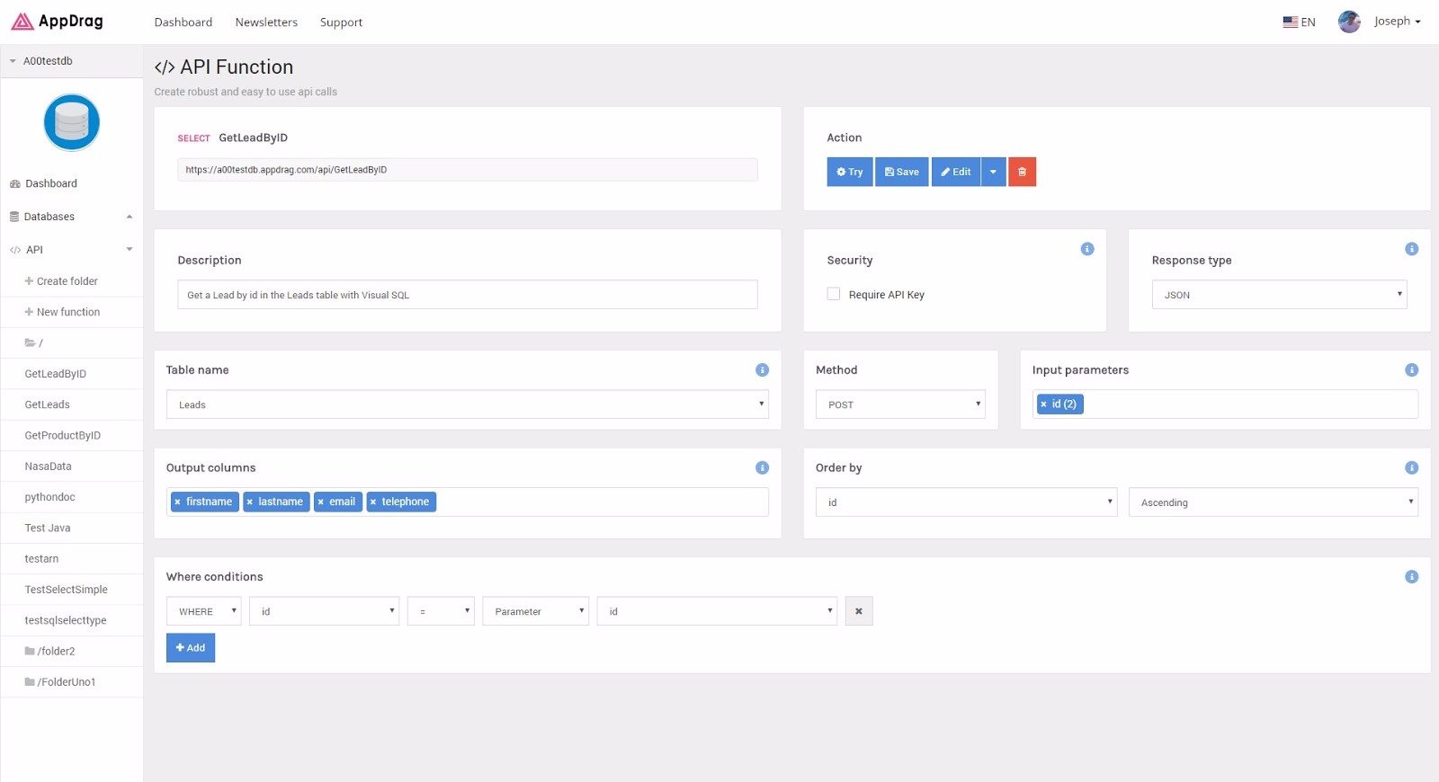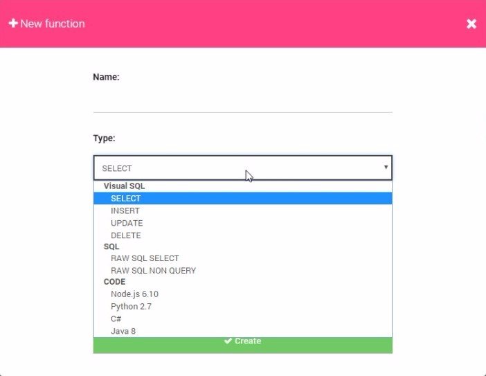 6- Allow the creation of its API without coding (Visual SQL) or by coding in its favorite language (NodeJS, Python, Java, C #, PHP, ...)